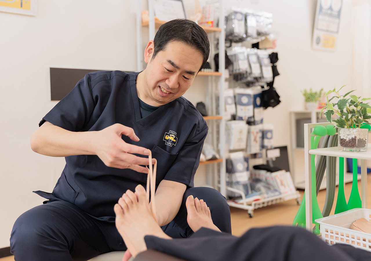 整足院では、外反母趾や足裏の痛みに特化したテーピング施術で足の機能改善と根本ケアを行っています。症状のある方はもちろん、まだ痛みが出ていない方も将来の不調を防ぐことが可能です。