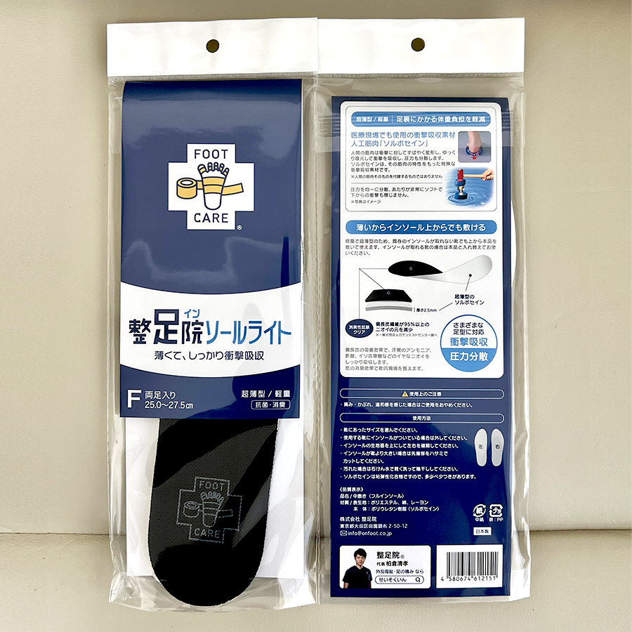 整足院(イン)ソール足裏全体のクッションインソールになります。荷重時のかかとの衝撃負担や、歩行時のねじれ負担を軽減できます。